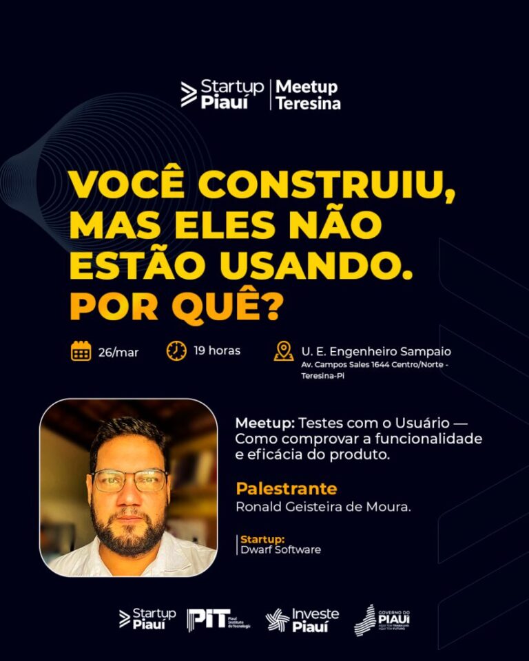 TecnologiaMeetup Startup: Teresina recebe palestra sobre testes com usuários ministrada pelo CEO da Dwarf Software