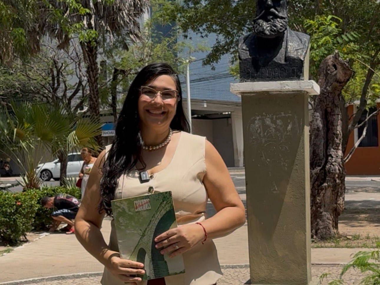O episódio desta semana do Revisitando a Revista foi gravado diretamente na Praça Pedro II, em referência à matéria “O espetáculo da Praça Pedro II”, do professor Odoaldo da Rocha Marinho. O texto resgata aspectos históricos, curiosidades e transformações do espaço ao longo do tempo, conectando memória urbana e vivência cultural da cidade. O resumo da edição foi apresentado pela chefe de gabinete da FMC, Clarissa Parente, que destacou a importância do registro histórico da praça como símbolo da vida social e cultural de Teresina.