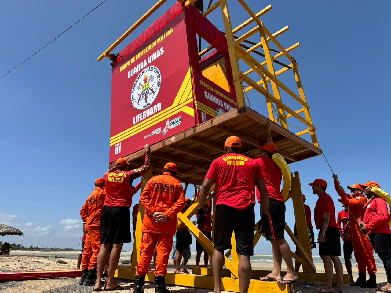 Na manhã deste sábado (20), o Governo do Piauí, por meio do Corpo de Bombeiros Militar do Estado do Piauí (CBMEPI) e com apoio da Secretaria de Segurança Pública (SSP), realizou a instalação do primeiro posto de observação guarda-vidas na praia Pedra do Sal, em Parnaíba. A iniciativa faz parte de um projeto que tem como objetivo potencializar as ações de segurança na região litorânea do estado e garantir mais proteção aos banhistas.